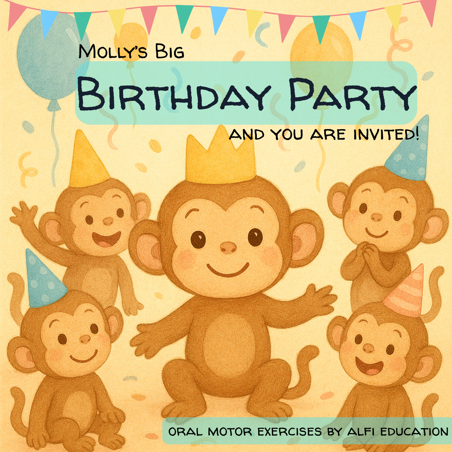 Molly’s Big Birthday Party offers a gamified approach to practicing facial expressions, vocalisations, and early play skills.