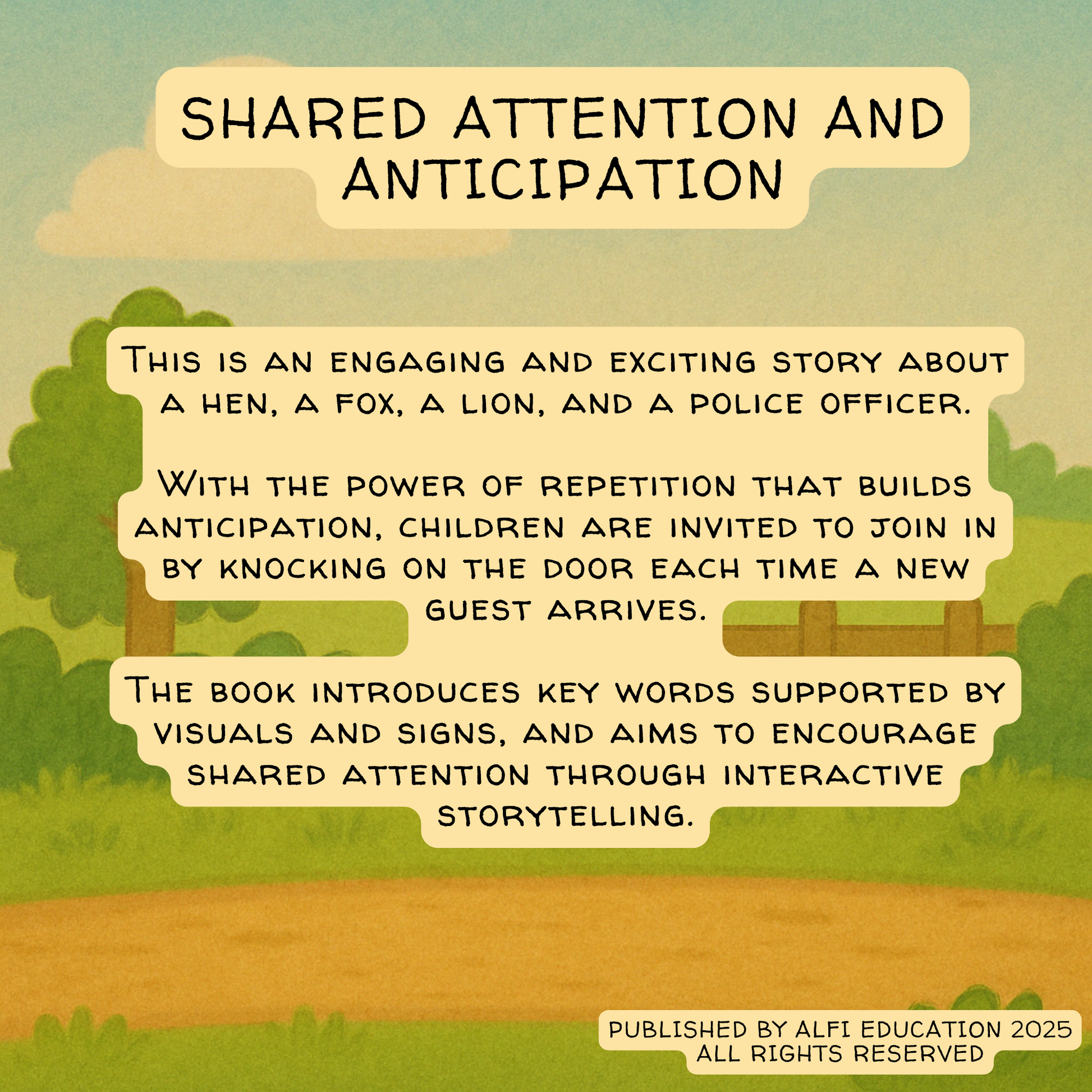 The book introduces key words supported by visuals and signs, and aims to encourage shared attention through interactive storytelling.